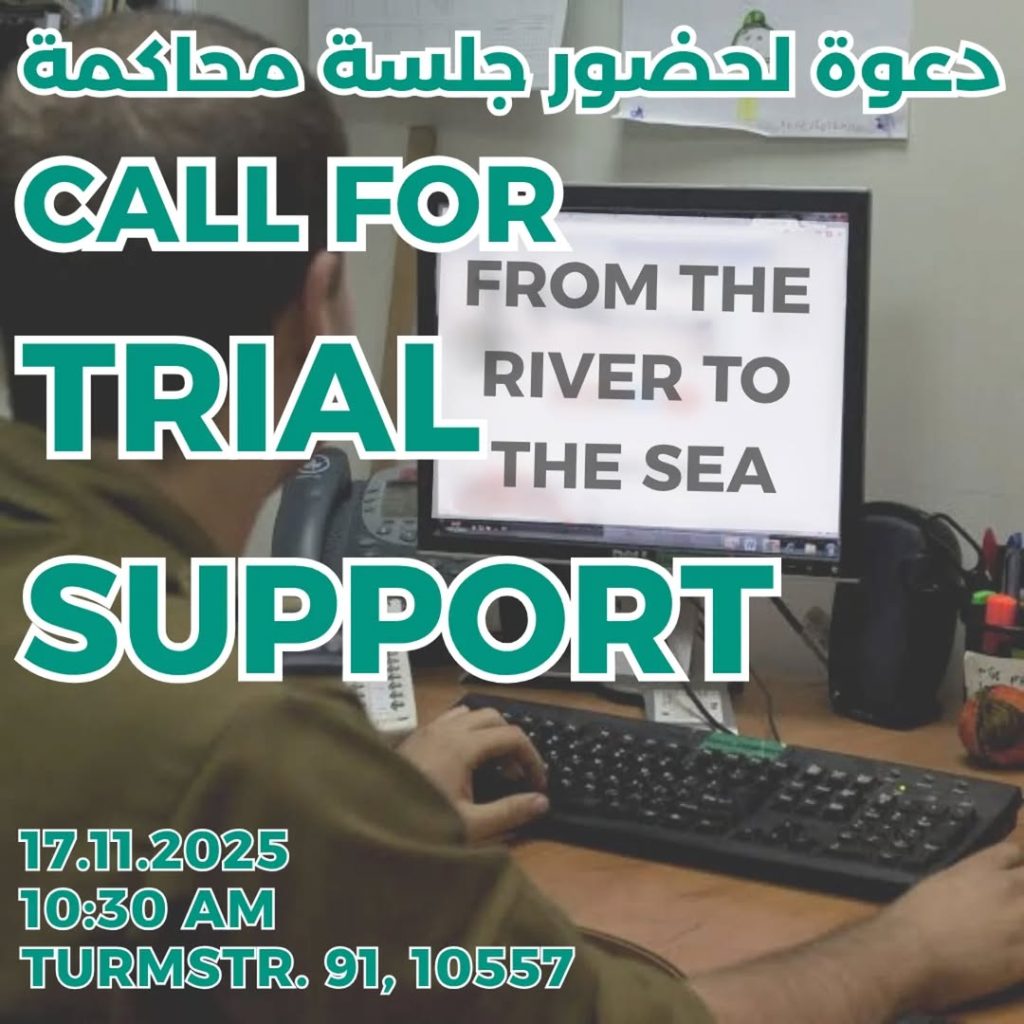 Kategorie: General Call for Trial Support - Amtsgericht Tiergarten, Turmstr. 91 10:30 17. November 2025 BerlinVeranstaltungsort anschauen Kompletten Kalender ansehen