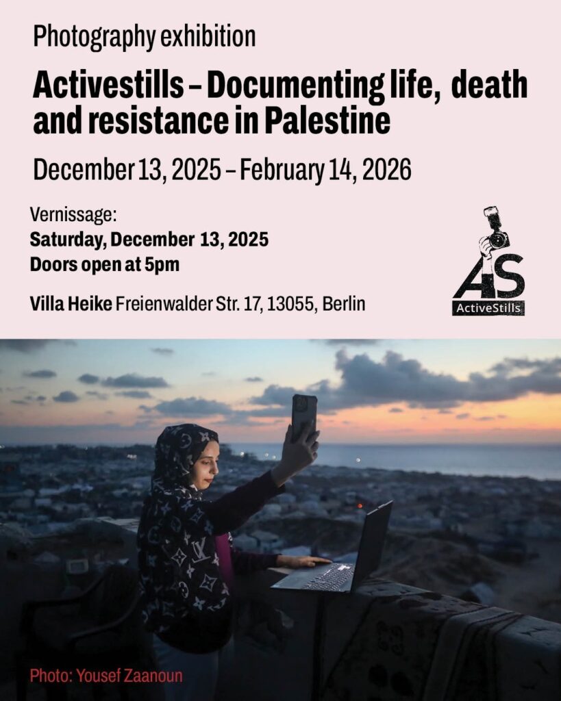 For nearly two decades, the Activestills collective has documented Israeli colonial violence and Palestinian resistance. This exhibition presents a visual narrative that spans 20 years — from attacks on Gaza and ongoing ethnic cleansing across Palestine, to everyday moments of resilience, dignity, and political struggle.