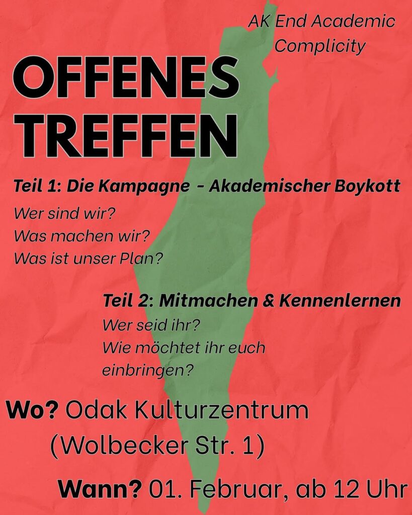 Kategorie: General Offenes Treffen - Die Kampagne - Akademischer Boykott 12:00 1. Februar 2026 MünsterVeranstaltungsort anschauen Kompletten Kalender ansehen