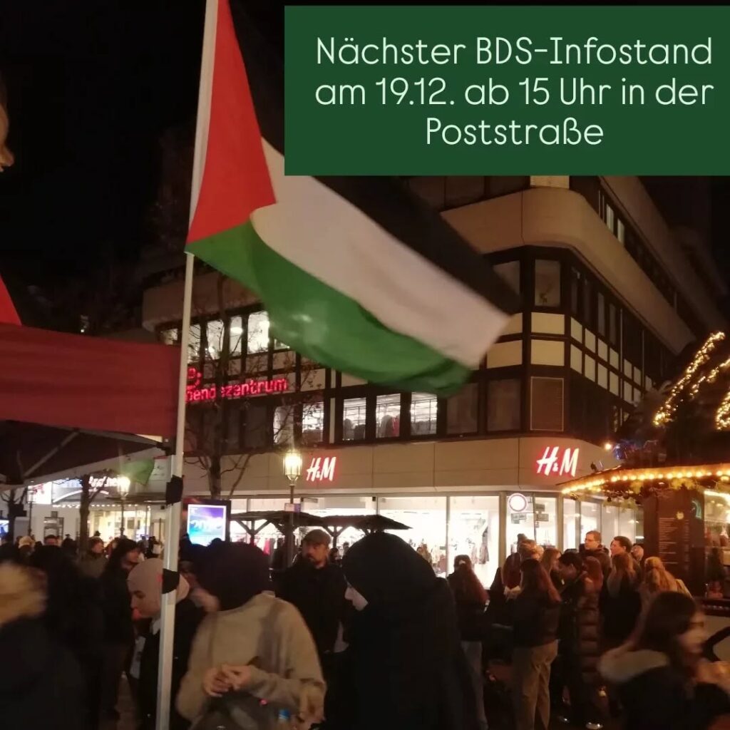 19. Dezember 2025DortmundNächster BDS-Infostand in der Poststraße Filmvorführung mit Soli-Tickets - No other Land Gaza Biennale Berlin Pavilion - Artist Talk March for Liberation #38 for a free Palestine -