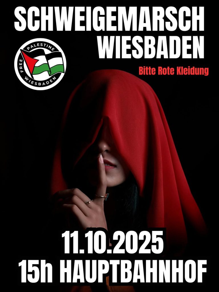 Kategorie: General Schweigemarsch Wiesbaden - Bitte rote Kleidung 15:00 11. Oktober 2025 WiesbadenVeranstaltungsort anschauen Kompletten Kalender ansehen
