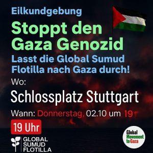 Eilkundgebung: Lasst die Global Sumud Flotilla - Demo beginnt am ROTEBÜHLPLATZ!