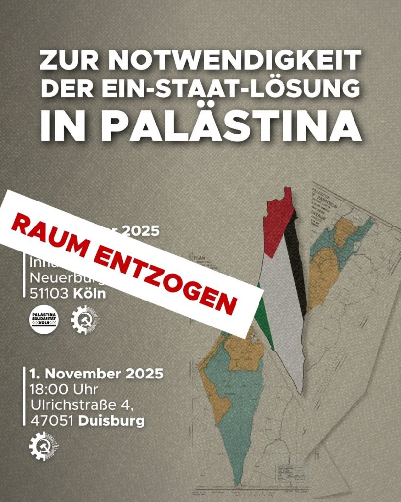 Kategorie: General Zur Notwendigkeit der Ein-Staat-Lösung in Palästina 18:00 – 19:001. November 2025 DuisburgVeranstaltungsort anschauen Kompletten Kalender ansehen
