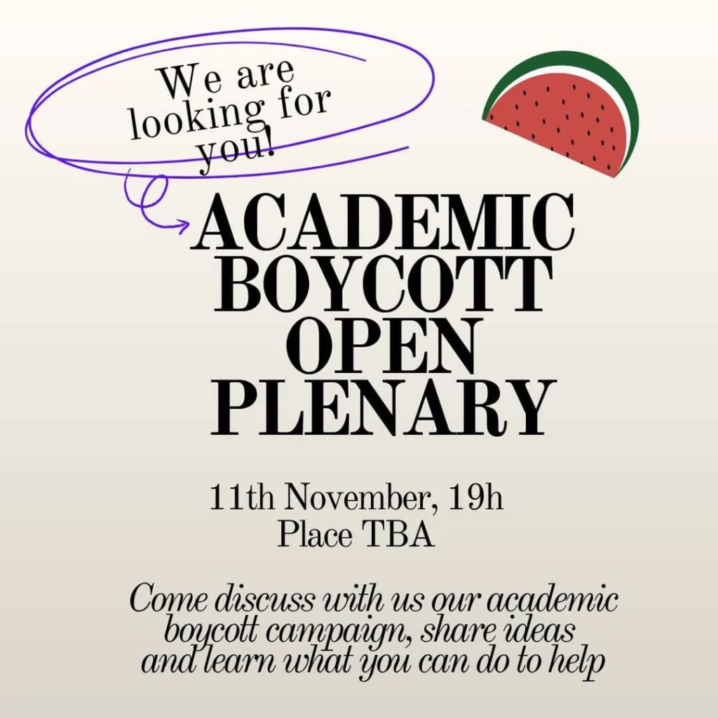 Kategorie: General Academic Boycott Open Plenary - We are looking for you! 19:00 11. November 2025 LeipzigVeranstaltungsort anschauen Kompletten Kalender ansehen