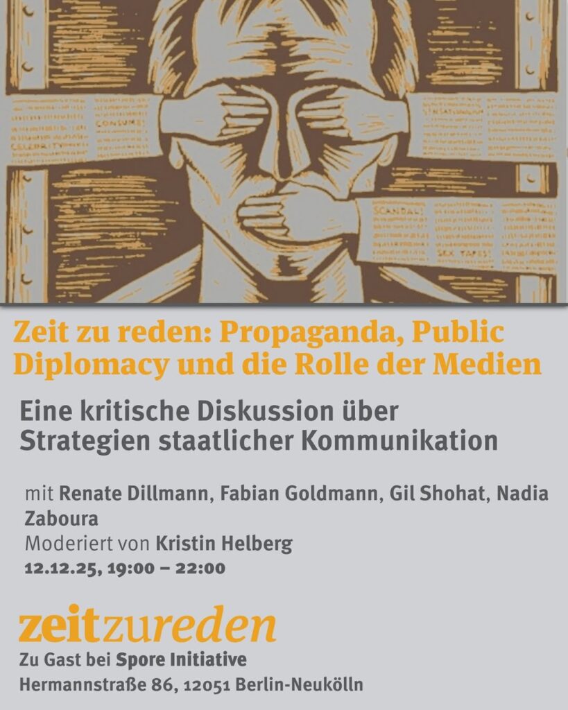 Kategorie: General Zeit zu reden: Propaganda, Public Diplomacy und die Rolle der Medien 19:00 – 22:0012. Dezember 2025 BerlinVeranstaltungsort anschauen Kompletten Kalender ansehen