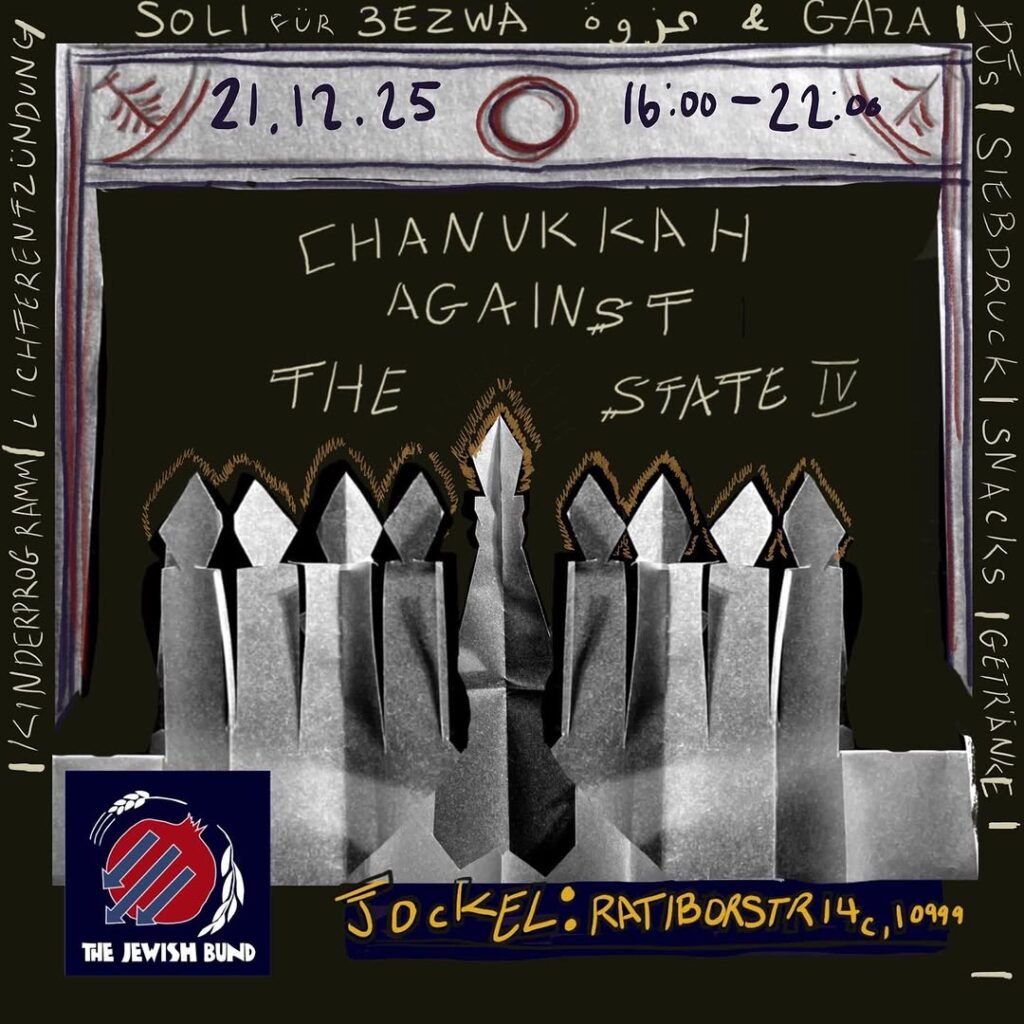 Kategorie: General Channukkah against the State IV - The Jewish Bund - Soli für 3EZWA & Gaza 16:00 – 22:0021. Dezember 2025 BerlinVeranstaltungsort anschauen Kompletten Kalender ansehen