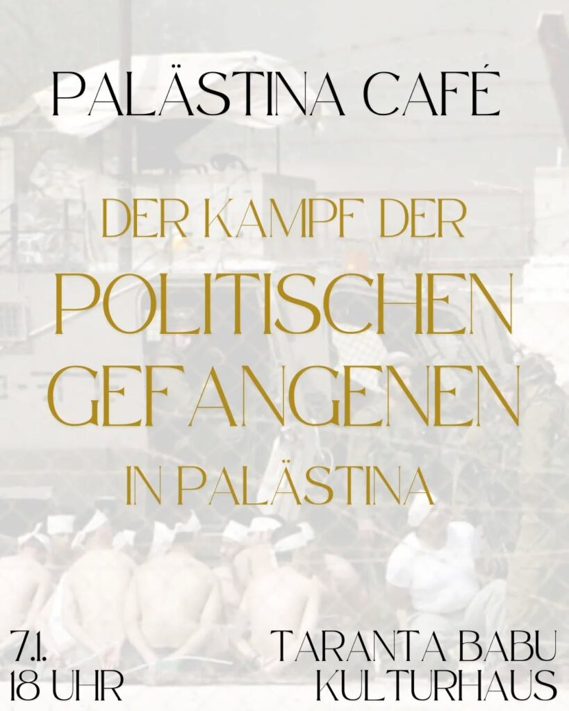 Kategorie: General Palästina Café - Der Kampf der politischen Gefangenen in Palästina 18:00 7. Januar 2026 BochumVeranstaltungsort anschauen Kompletten Kalender ansehen