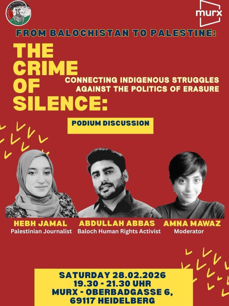 Veranstaltungskalender Kategorie: General Podium Diskussion - The crime of silence: Connecting indignious struggles against the politics of erasure 19:30 – 21:3028. Februar 2026 HeidelbergVeranstaltungsort anschauen Kompletten Kalender ansehen