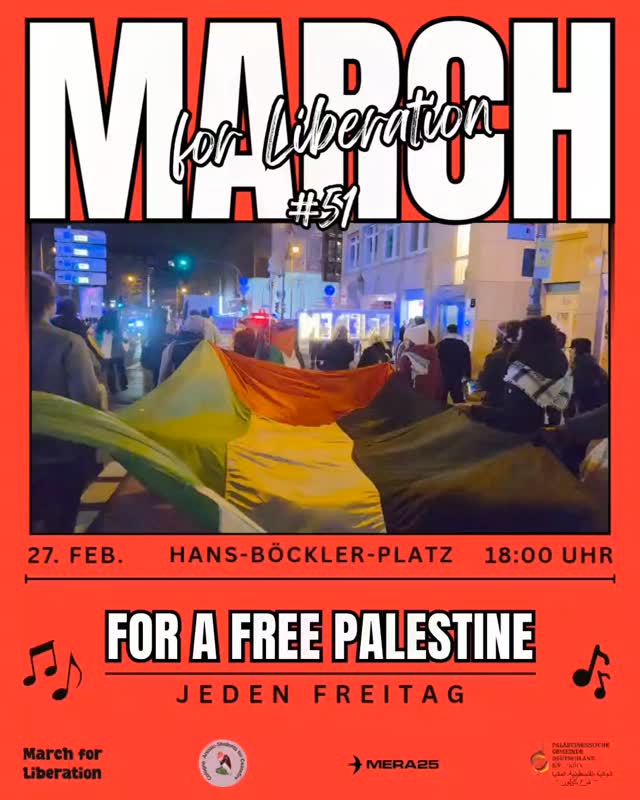 Kategorie: General March for Liberation #51 for a free Palestine 18:00 27. Februar 2026 KölnVeranstaltungsort anschauen Kompletten Kalender ansehen