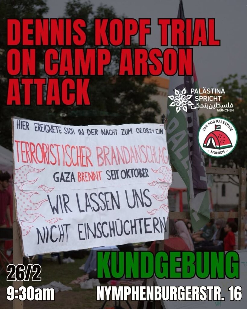 Kategorie: General Kundgebung - Dennis Kopf trial on camp arson attack 9:30 26. Februar 2026 MünchenVeranstaltungsort anschauen Kompletten Kalender ansehen
