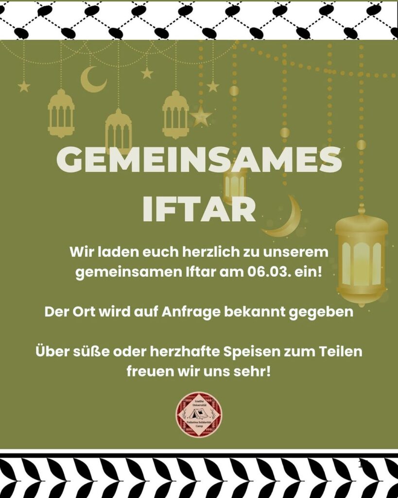 Veranstaltungskalender Kategorie: General Gemeinsames Iftar - Wir laden euch herzlich zu unserem gemeinsamen Iftar ein 17:30 6. März 2026 Frankfurt / MVeranstaltungsort anschauen Kompletten Kalender ansehen