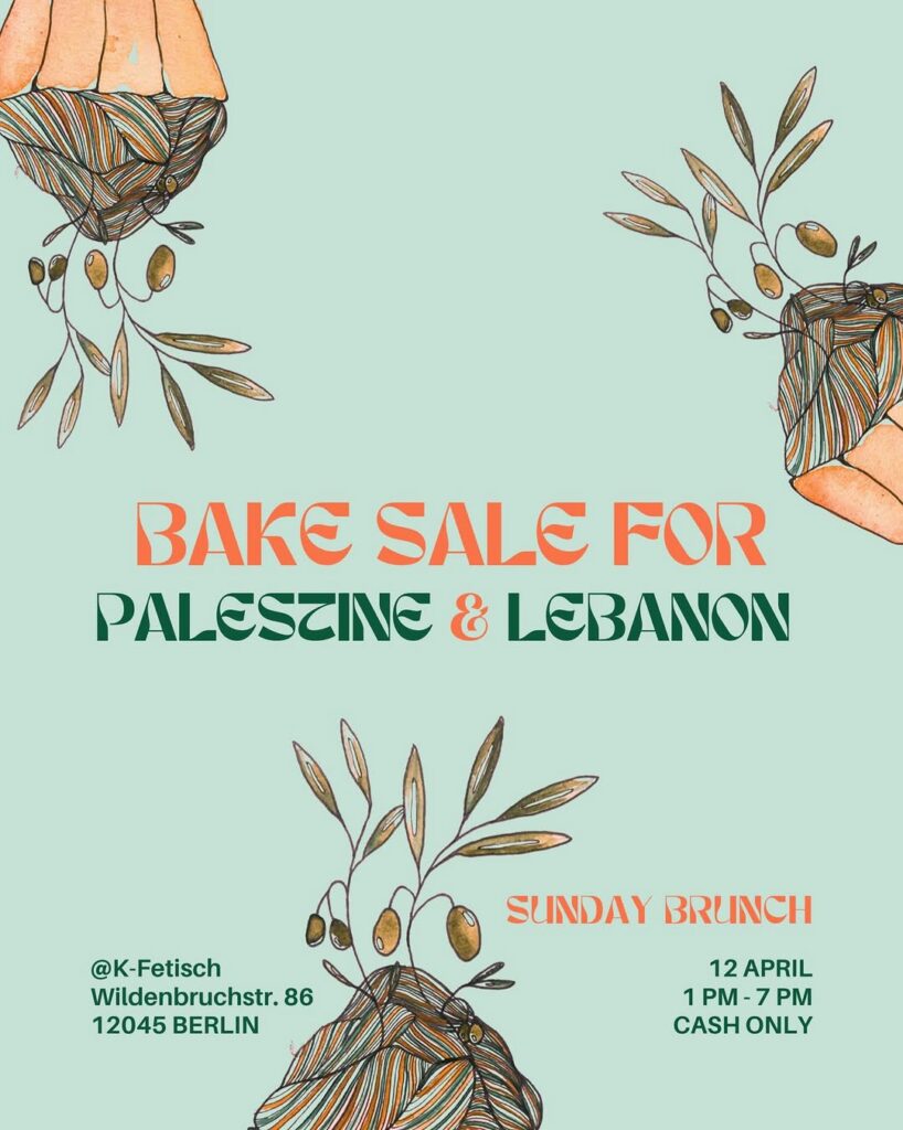 Veranstaltungskalender Kategorie: General Sunday Brunch - Bake Sale fo Palestine & Lebanon 13:00 – 19:0012. April 2026 BerlinVeranstaltungsort anschauen Kompletten Kalender ansehen