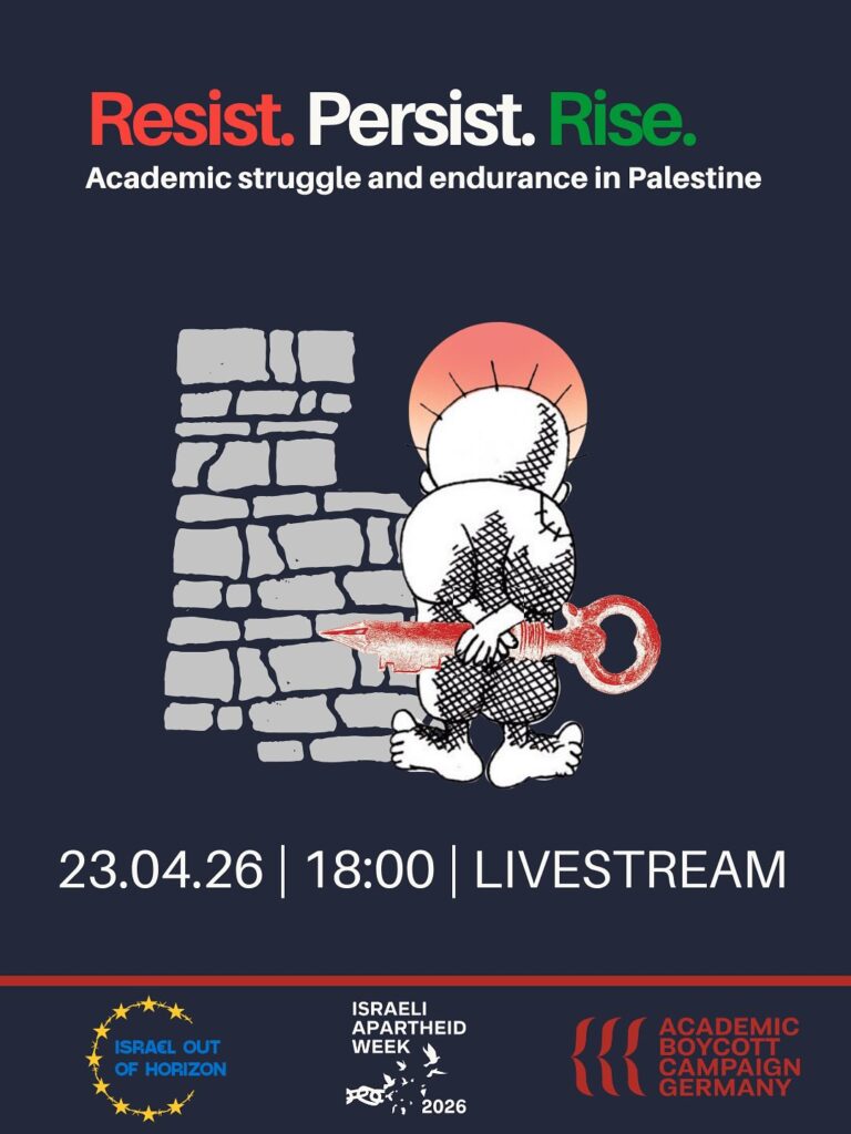 Kategorie: General Resist.Persist. Rise. - Academic struggle and endurance in Palestine 18:00 23. April 2026 OnlineVeranstaltungsort anschauen Kompletten Kalender ansehen