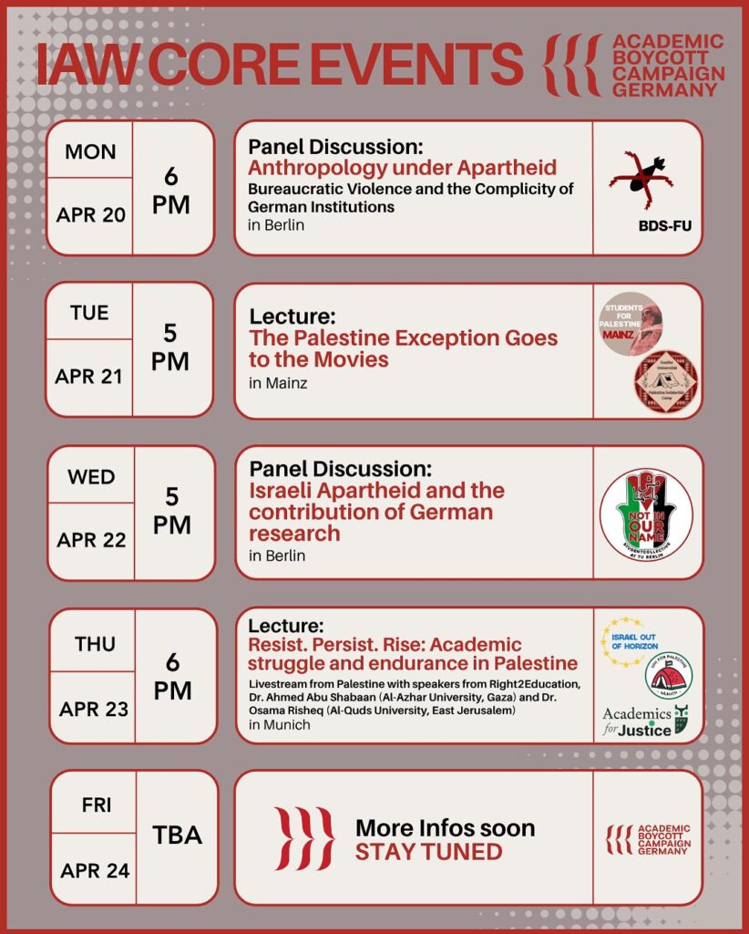 Veranstaltungskalender Kategorie: General Panel Discussion: Anthropology under Apartheid 18:00 20. April 2026 BerlinVeranstaltungsort anschauen Kompletten Kalender ansehen