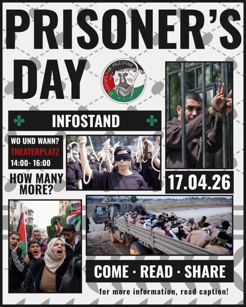 Kategorie: General Infostand - Prisoner`s Day - Come - Read - Share 14:00 – 16:0017. April 2026 HeidelbergVeranstaltungsort anschauen Kompletten Kalender ansehen