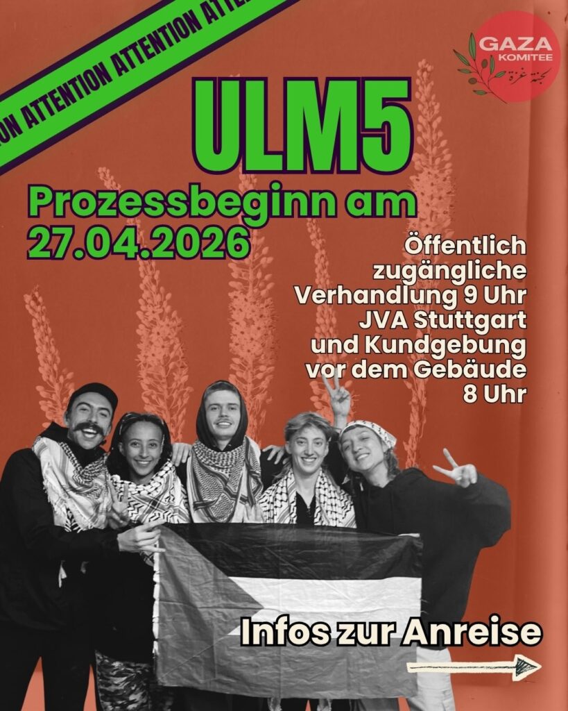 Veranstaltungskalender Kategorie: General ULM5 Prozessbeginn am 27.04.2026 in Stuttgart 8:00 27. April 2026 StuttgartVeranstaltungsort anschauen Kompletten Kalender ansehen
