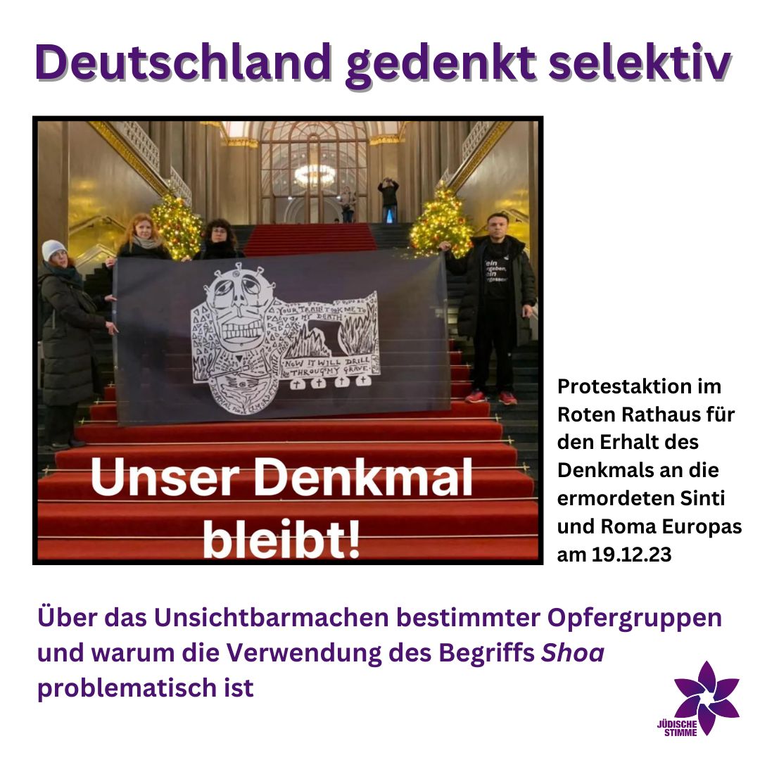Aktuelles Wie funktioniert Deutschlands Erinnerungstheater in der Wirklichkeit: Deutschland gedenkt selektiv! 21. Dezember 2023 Facebook-Eintrag Jüdische Stimme vom 21.12.2023