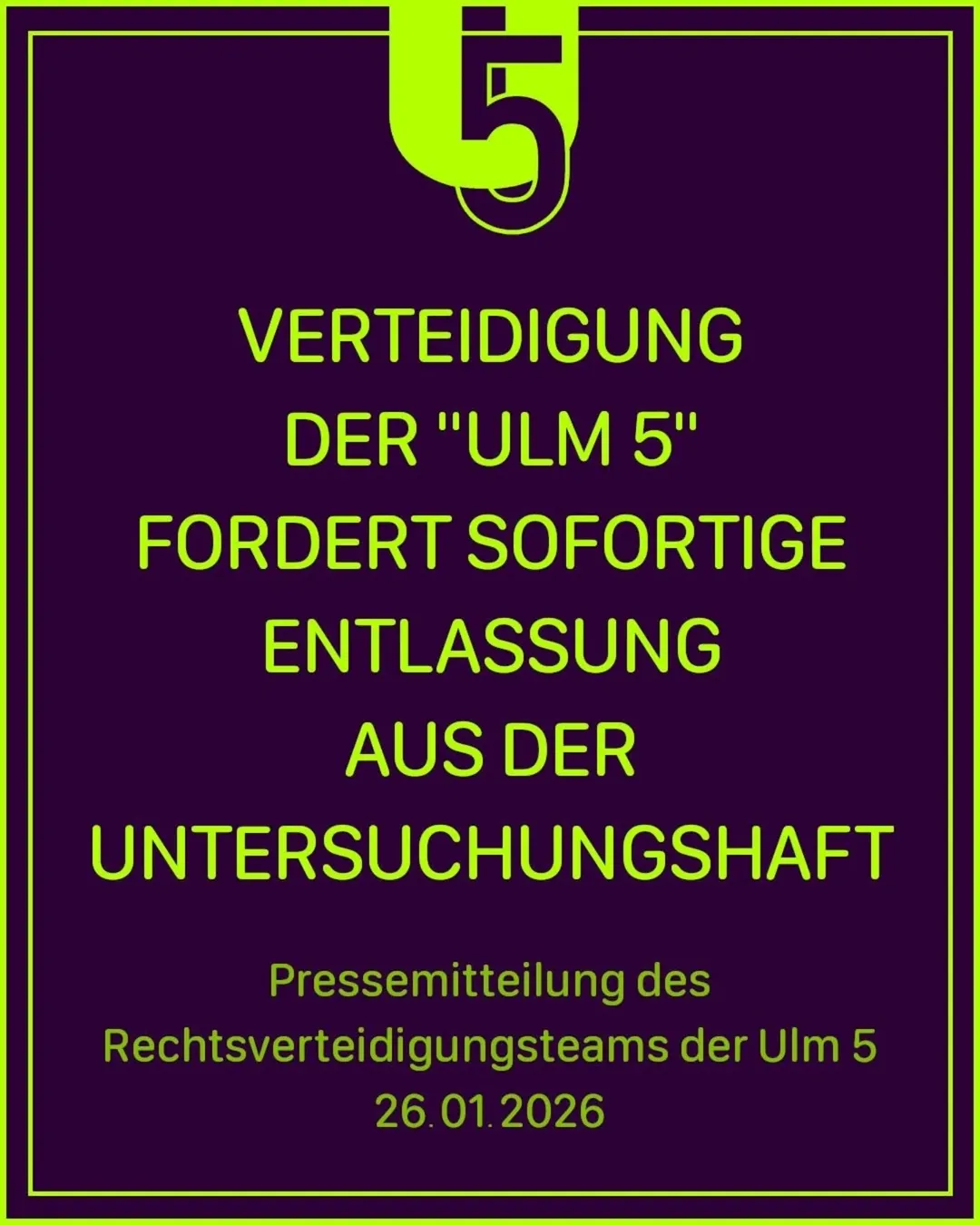 PM: Verteidigung der „Ulm 5“ fordert sofortige Entlassung aus Untersuchungshaft